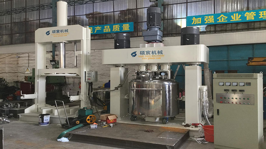 玻璃膠基料(liào)攪拌機/強(qiáng)力(lì)分散機是一(yī)種無死點集分散、攪拌、混合為一體的(de)卓(zhuó)效混合設備。